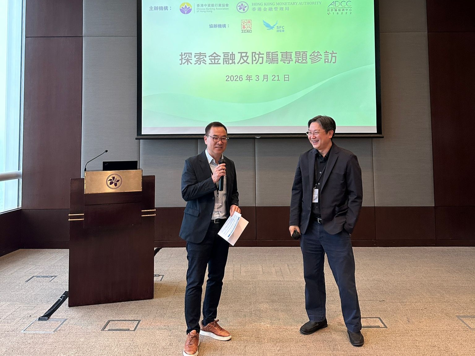 2026年3月21日上午,协会与香港金融管理局(“金管局”)、香港警务处反诈骗协调中心(ADCC)联合主办,香港廉政公署(ICAC)、香港证券及期货事务监察委员会(“证监会”)协办的金融探索及防骗专题参访活动,于金管局举行,投资者及理财教育委员会(“投委会”)代表及近30名香港城市大学学生参加。