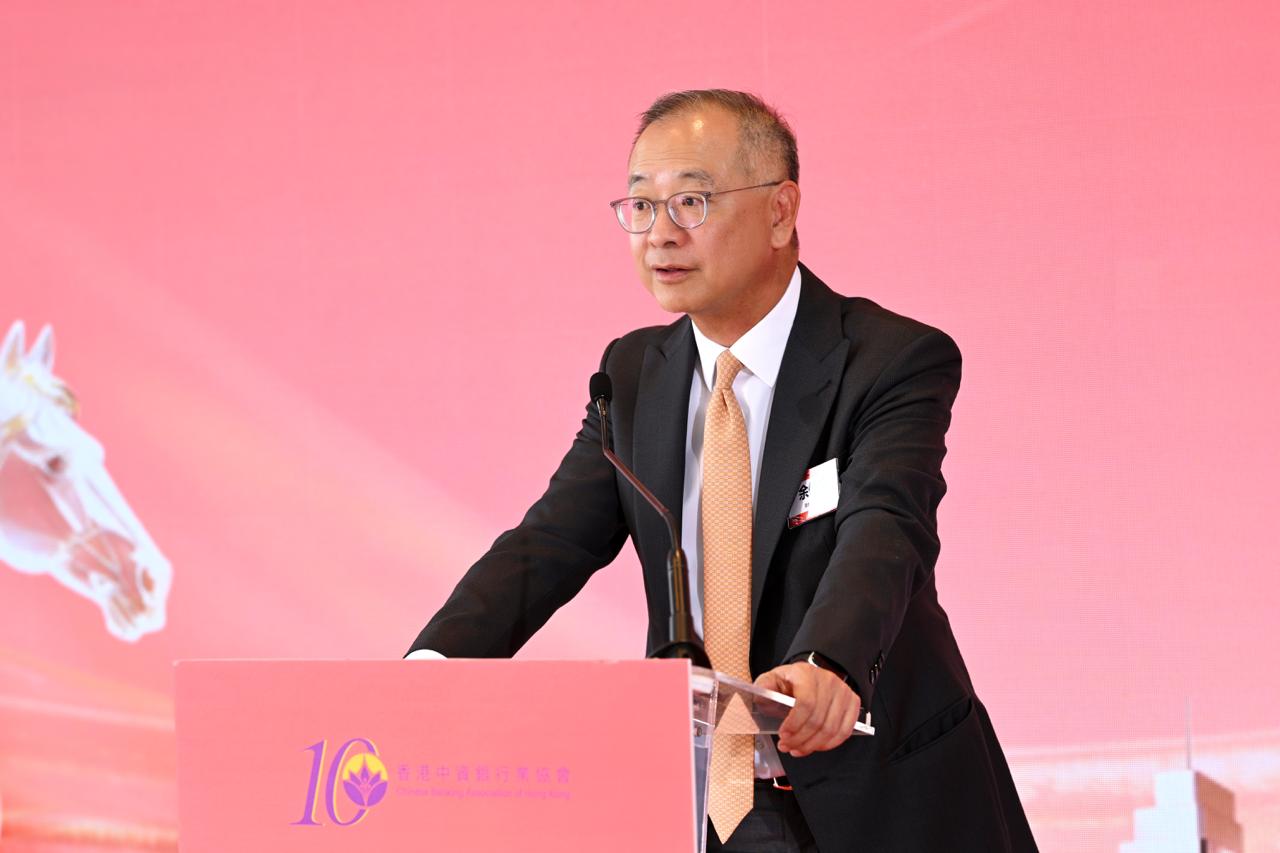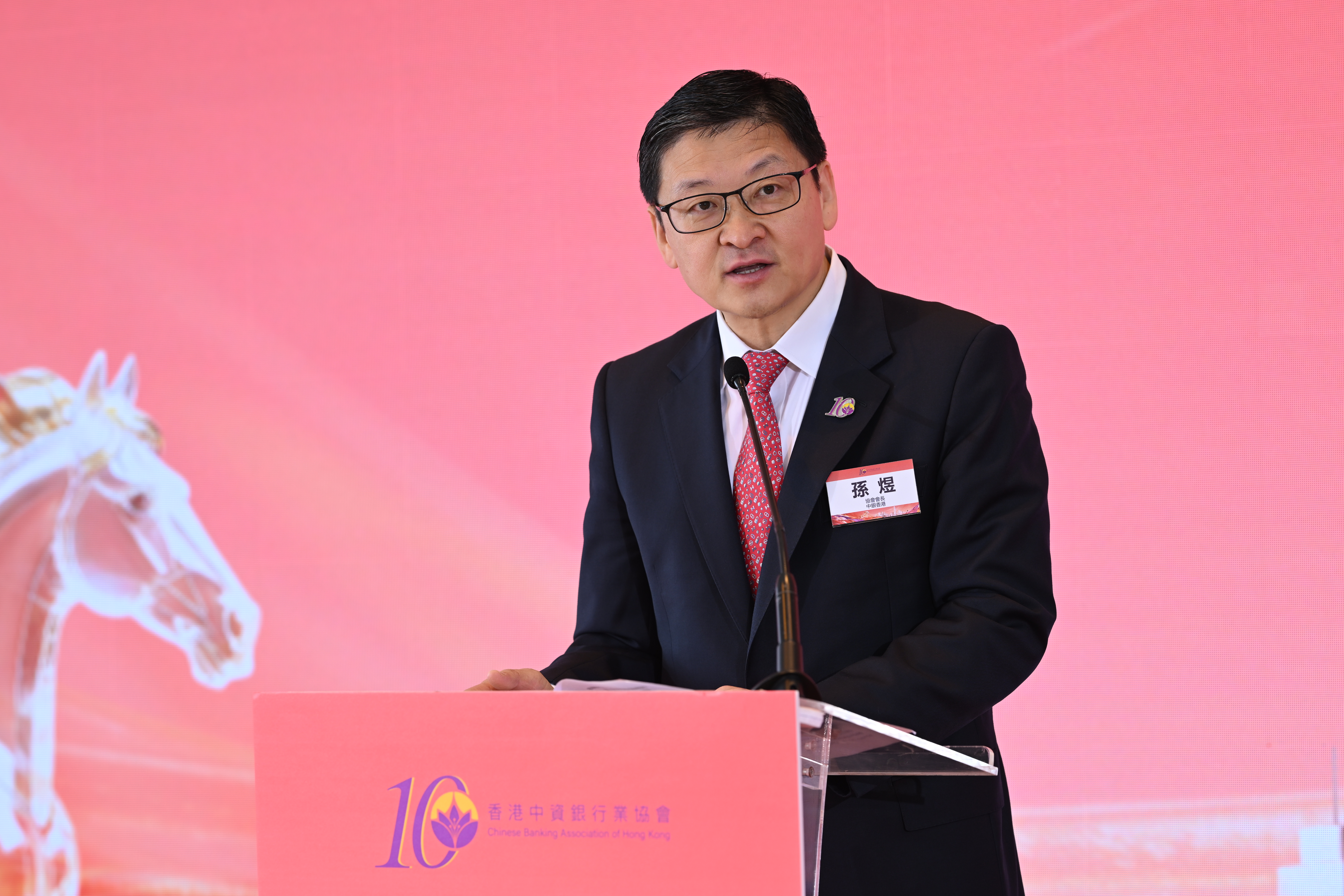 活動伊始,中國工商銀行(亞洲)舞蹈團隊帶來助慶表演《駿馬吟‧扇舞春風》,舞蹈以紅扇為翼,禮贊奮進征程,表達會員單位與協會同心同行的深厚情誼。協會會長孫煜隨後致辭,他從「馬不停蹄」,「快馬加鞭」,「開足馬力」這3個帶「馬」字的詞語作為切口,回顧協會會務發展接續取得新進展,會員單位千帆競發、經營業績穩中有進,以及支持國家「十五五」規劃開好局、起好步的決心願景。2026年是協會成立十周年,協會將組織展開協會成立十周年系列活動,本次交流會也是這一系列活動的啟動禮。希望各會員單位積極參與,共同總結這十年收穫,共同謀劃下一個十年美好願景。在全場嘉賓的共同期待下,啟動儀式拉開帷幕,主禮嘉賓攜手按下啟動鍵,標誌着協會成立十周年系列活動正式啟動。