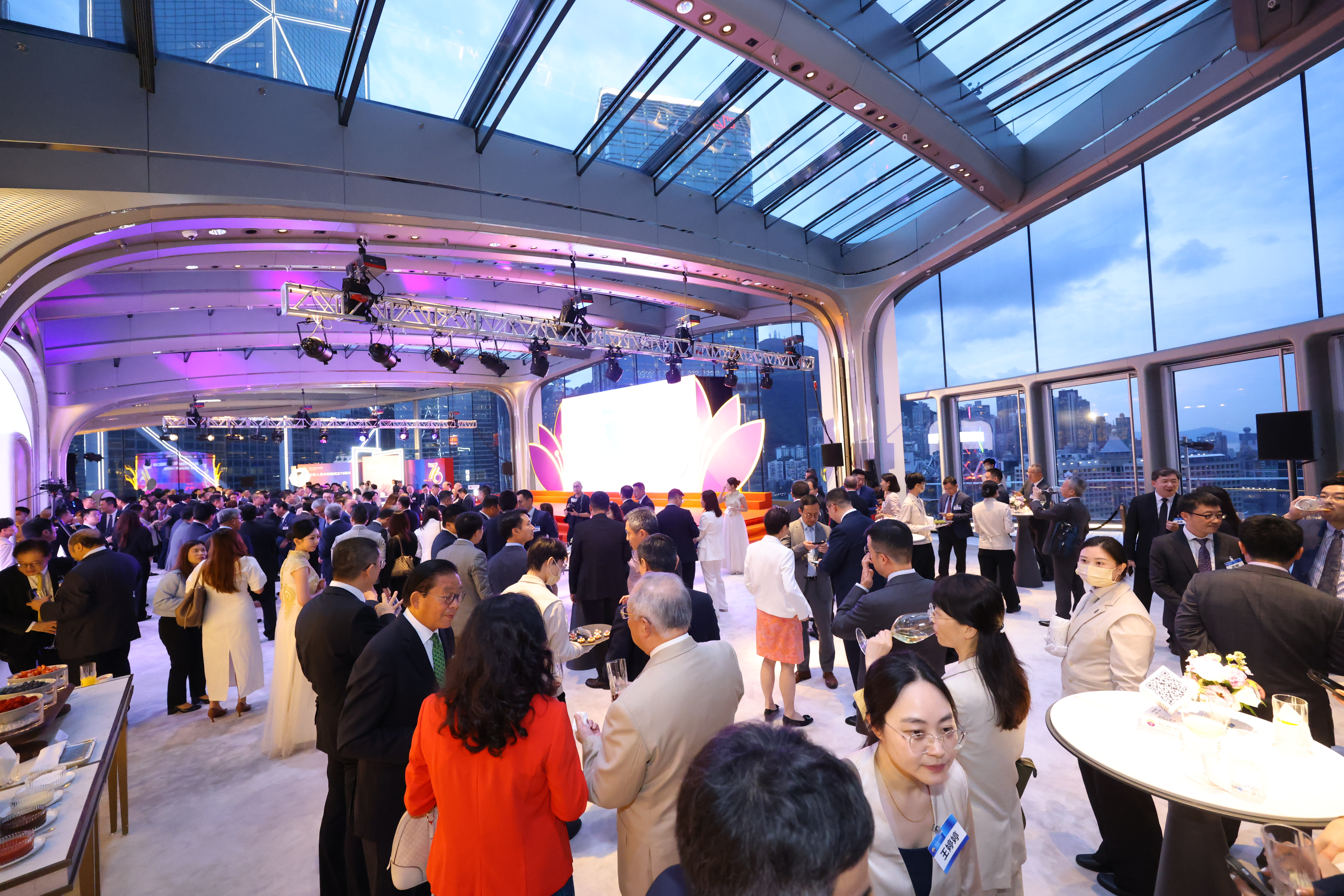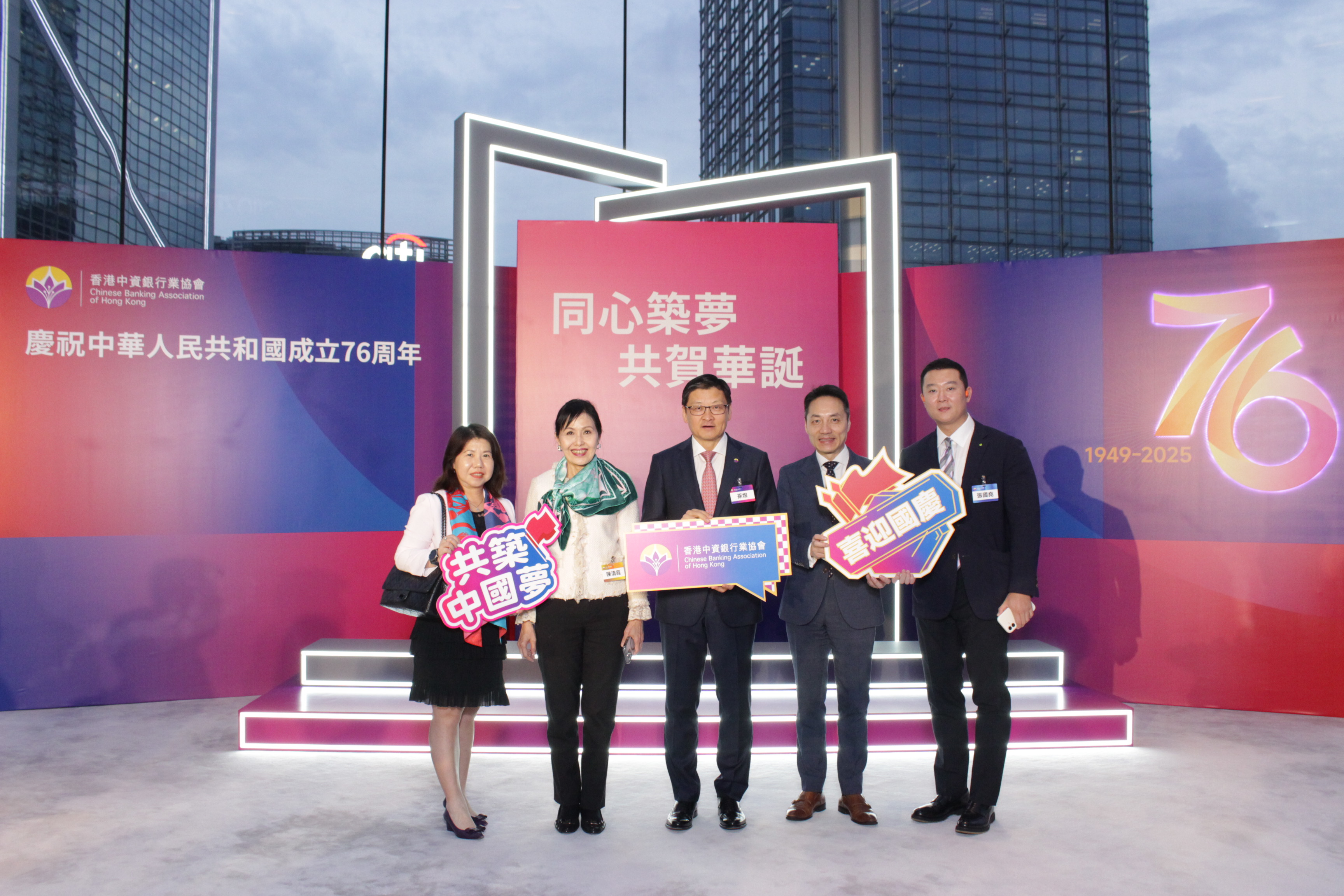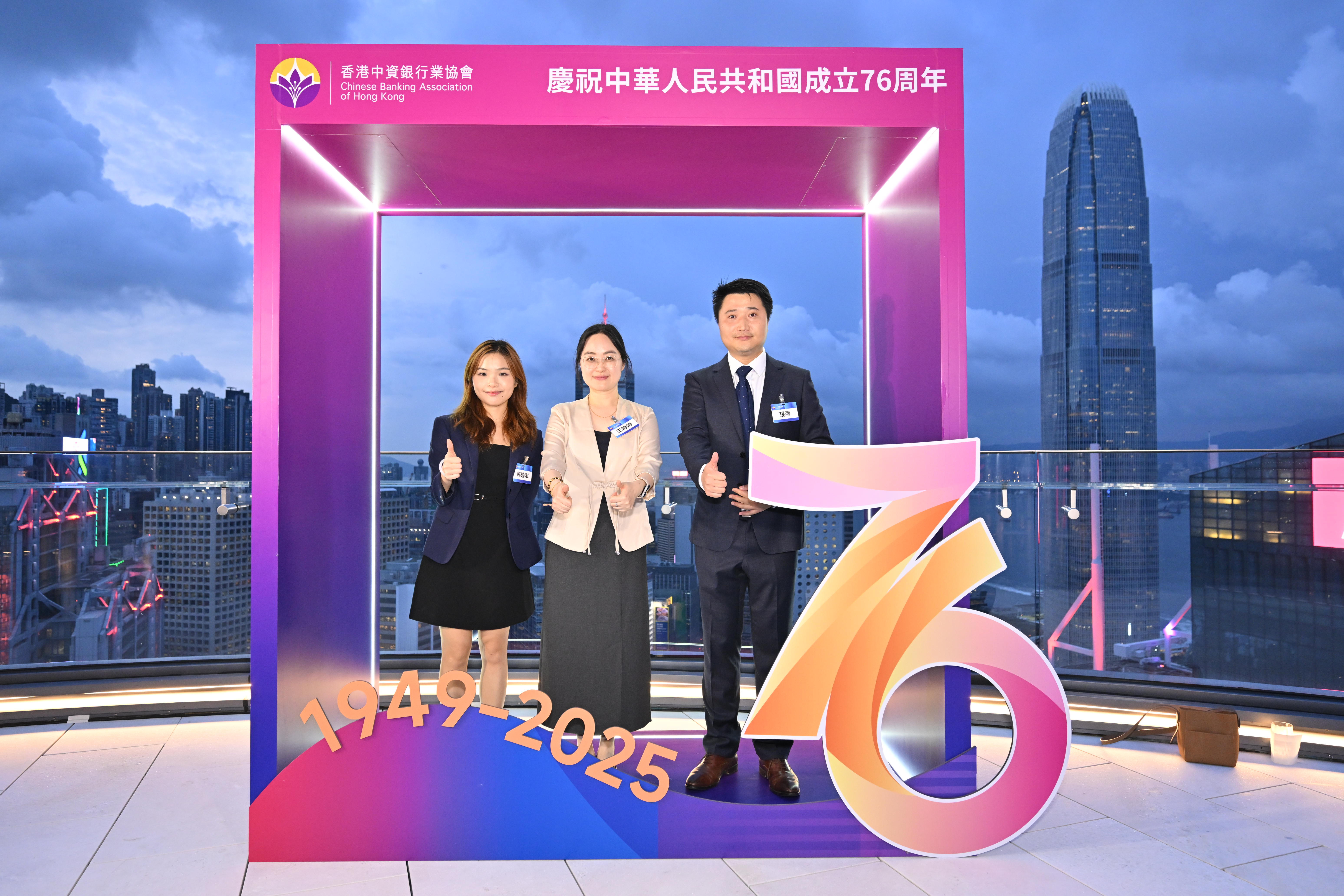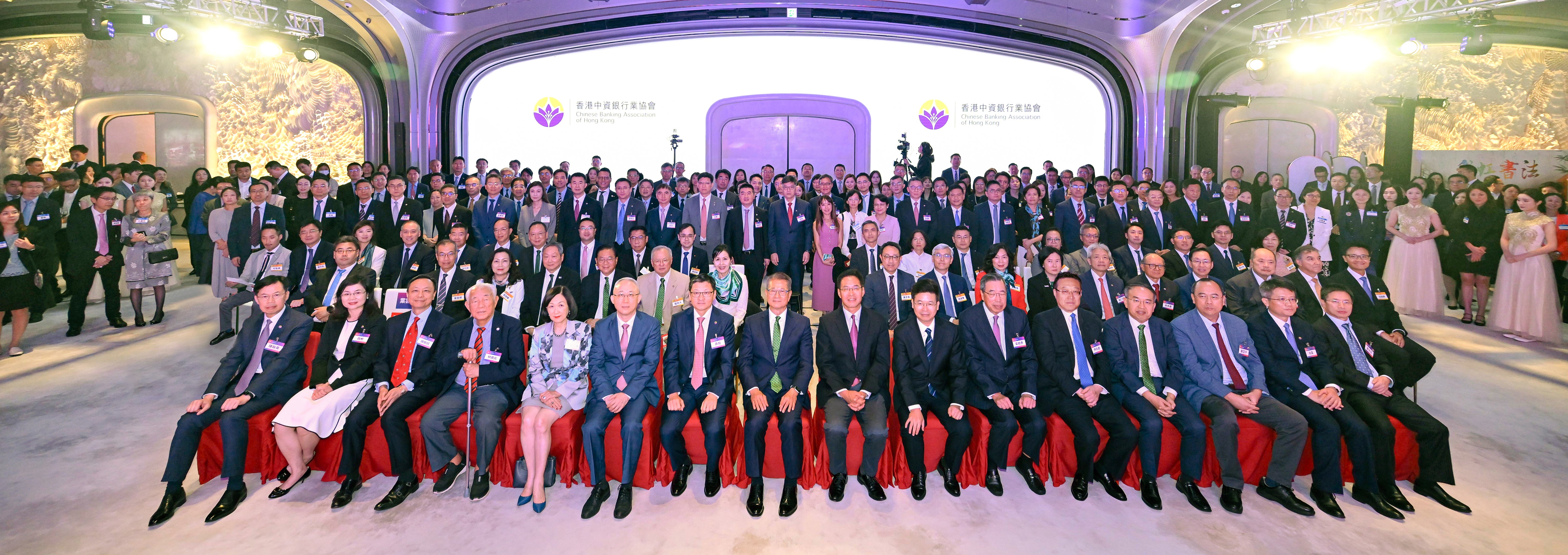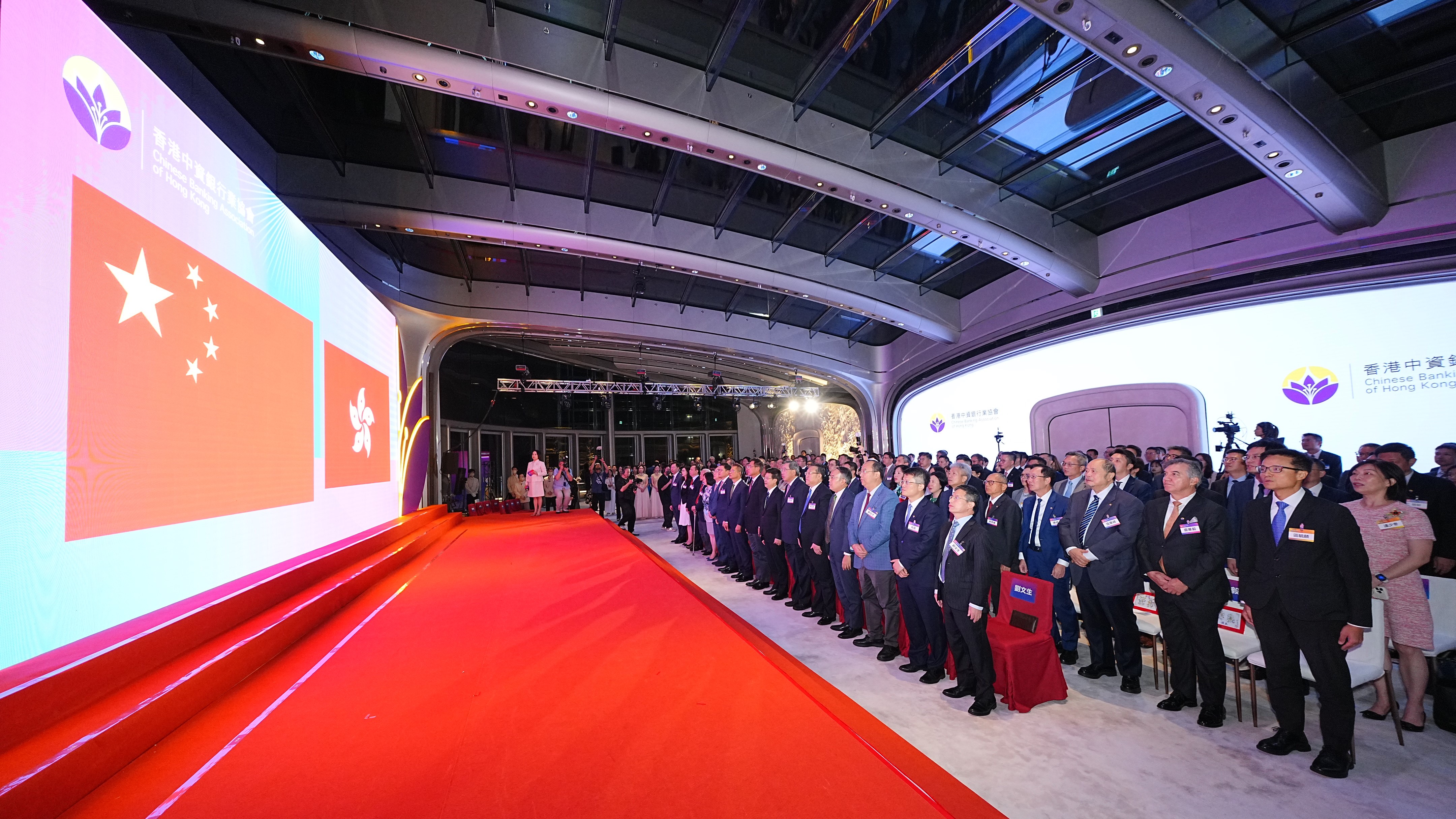 2025年9月17日,香港中資銀行業協會(「協會」)假香港The Henderson宴會廳舉行慶祝中華人民共和國成立76周年酒會。香港特別行政區政府財政司司長陳茂波,中央政府駐港聯絡辦副主任祁斌,駐港國家安全公署副署長林建東,外交部駐港特派員公署副特派員李永勝,香港特別行政區立法會主席梁君彥,香港特別行政區行政會議非官守議員召集人葉劉淑儀,香港中資保險業協會會長尹兆君,香港特別行政區政府財庫局局長許正宇,香港金融管理局副總裁陳維民,協會會長孫煜、顧問林廣兆、副會長劉亞干、肖彬、肖霆、陳振英,國家開發銀行香港分行副行長劉文生等擔任主禮嘉賓,來自金融、銀行、工商等社會各界逾300位代表歡聚一堂,共慶祖國76周年華誕,現場氣氛莊重而熱烈。